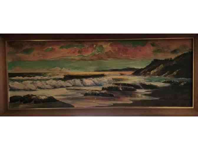 Seascape is a 48x18 inch oil on canvas with frame included.