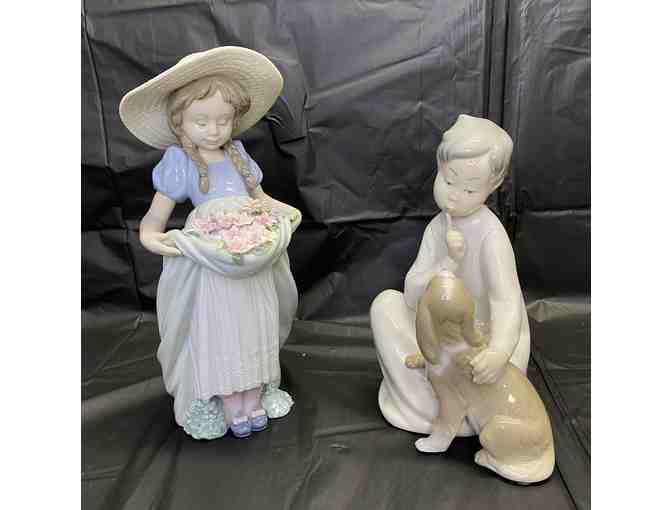 Complete your collection with this set of 2 luxury porcelain sculptures handcrafted in Spain! Sculptures include a beautifully detailed flowergirl and a small child with their best friend.