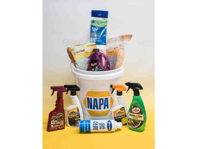 Spruce up your car! Kit includes: Napa bucket Quick Detailer spray Armor All Multi-purpose spray Sprayway Glass Cleaner Armor All Original Protectant Turtle Wax Wheel and Tire Cleaner Meguiars car wash liquid Gear Up Sponge Gear Up Microfiber towels Napa Chamois