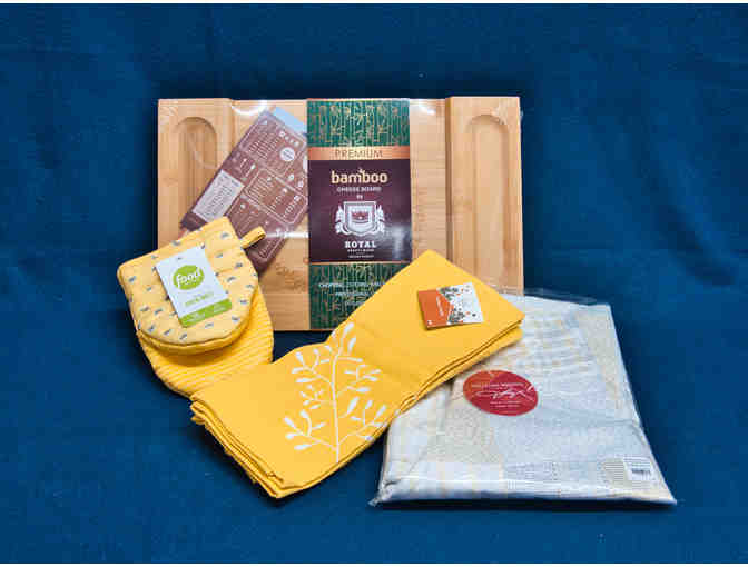 William Sonoma Bamboo Cheese Board, Dolly Parton Apron, oven mitt and tea towel