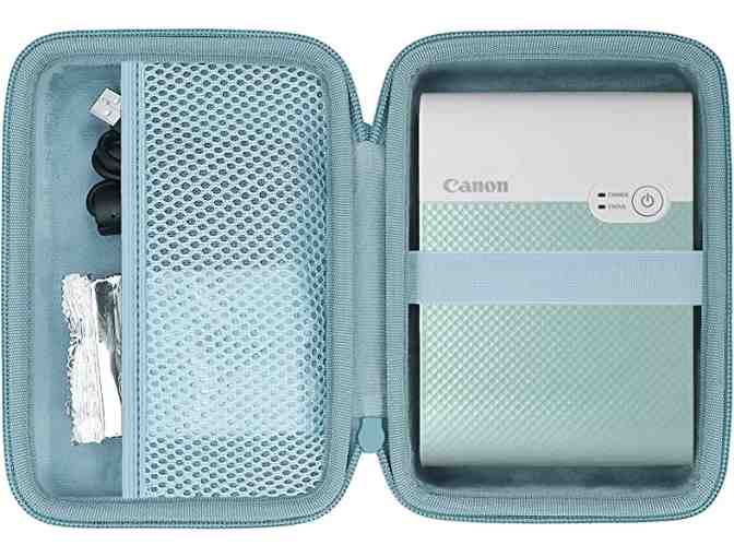 This portable travel photo printer carrying case is perfect for your Canon SELPHY QX10 portable square photo printer. It has space to accommodate photo paper, ink, and more accessories.