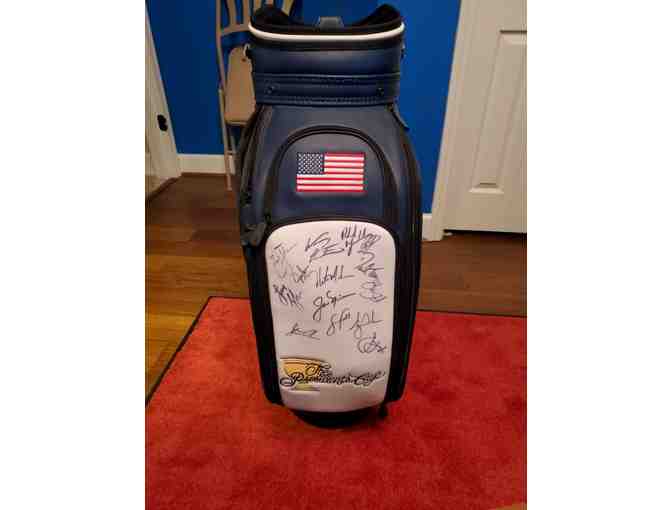 Autographed Official US Team Presidents Cup golf bag from 2017 (LIVE ONLY)