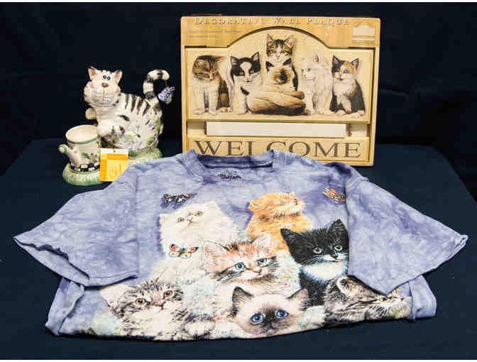 Kitty welcome sign, Cat t-shirt size large, kitty candle holder