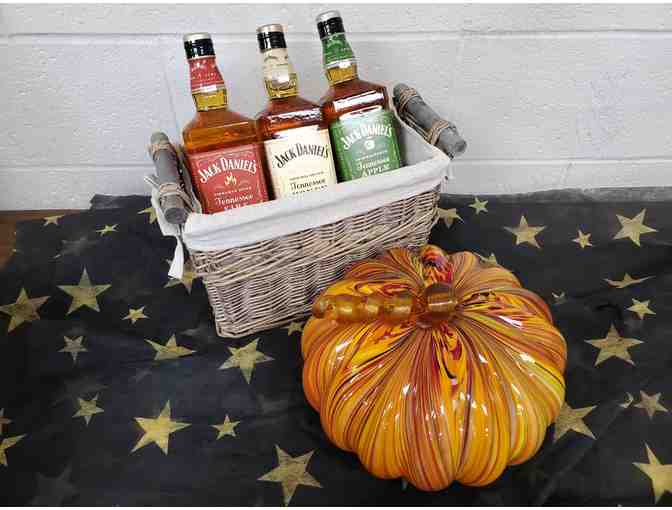 It's Halloween season and what goes best with the spooky, cold evenings sitting by the fire?? Well of course a sip of Jack Daniels while you admire the flames reflecting off this beautiful glass pumpkin. You get 3 different kinds of Jack Danies: Cinnamon Spice Tennessee Fire, Tennessee Honey and Tennessee Apple. Enjoy!!