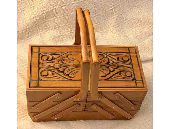 Made of wood with a hand-carved top, it’s so pretty you can leave it handy on the bureau, ready to pop open and present the perfect accessory to your outfit of the day.