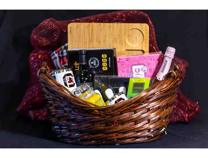 This basket includes 2- USC tumblers, gourmet popcorn, wine, a charcuterie bamboo board, movies, a local charcuterie gift certificate valued at $120, and much more!