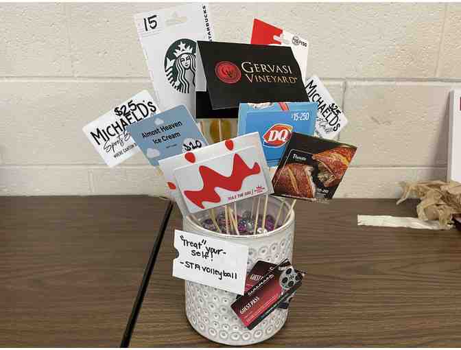 The winner of this auction will be treated with numerous gift cards to fan favorite restaurants and a movie! This basket includes gift cards from Almost Heaven, Michael D’s, Smoothie King, Dairy Queen, Panera Bread, Gervasi, Starbucks, Jimmy Johns, Acme Fresh Market and Cinemark.
