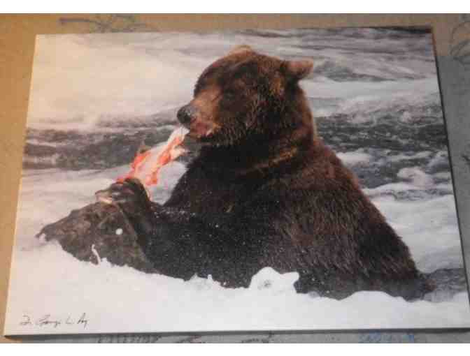 Photo printed on canvas with wood stretcher. Fabulous Bear photo taken by Dr. George L. Poy at Brooks Falls, Katmay National Park, Alaska.