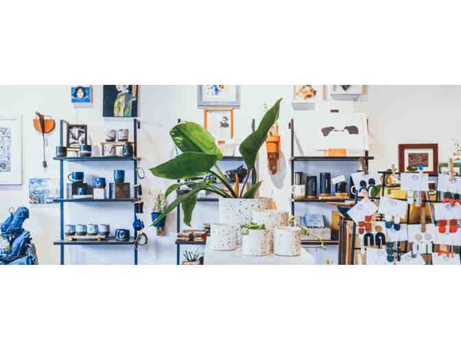 This bundle includes a $25 gift card to Mission Blue and a 10 oz bag of Saint Frank Coffee's Sister Moon medium roast coffee beans. Sip and shop where you live!