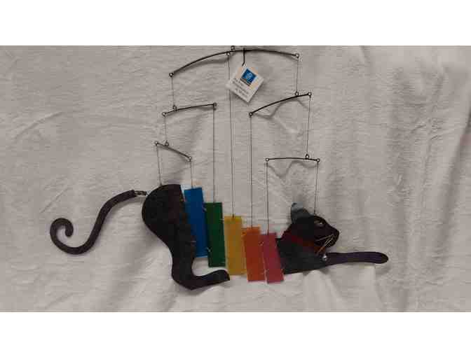 Artisan crafted in Bali, this glass and metal mobile will add color and joy to any setting. 25"w 23"h 2"d