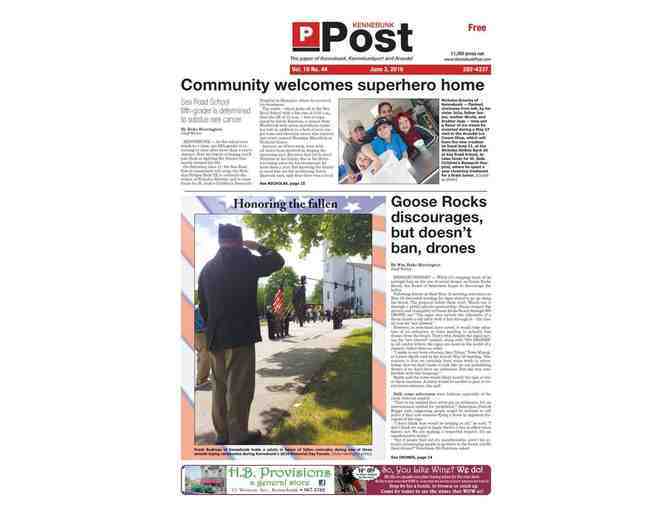 Item Description:Extra! Extra! Let them read all about it in your quarter-page ad the Kennebunk Post, a free weekly paper serving the Kennebunks and Arundel.
