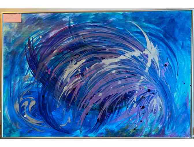 Acrylic ink 24" x 36" in BLUES, TURQUOISE & LAVENDER. Ready to hang.