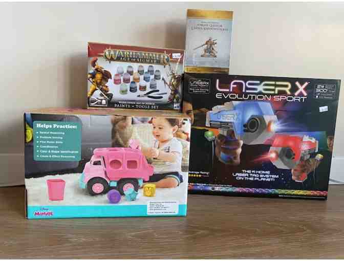 Age of Sigmar Warhammer paint nd tools set and limited edition Stormcast Eternals knight figure. Green tpus meets Disney character Minnie Mouse. Also favourite childhood pastime The Laser X Evolution blaster set. Also included an adorable pink recycling truck. Green toys are made of ocean-bound and post consumer recycled plastic andif perfect for babies and toddlers.