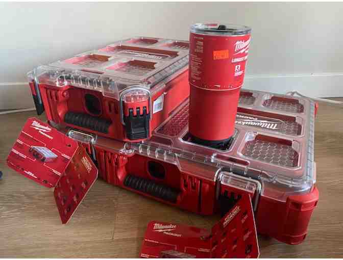 Kenmac has donated a Milwaukee Packout with tumbler.   Click together or use individually.   The Packout is a very versatile storage system.  Included is an organizer, a compact organizer and a 20 oz. tumbler for your hot or cold beverages.