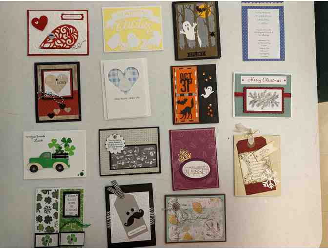 A pack of 14 cards, handmade and crafted by Sue, includes two of each of the following: