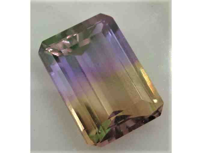 Ametrine is a bicolor quartz gemstone consisting of amethyst and citrine. If you want to make a beautiful piece of jewelry, you may want to bid on this item.