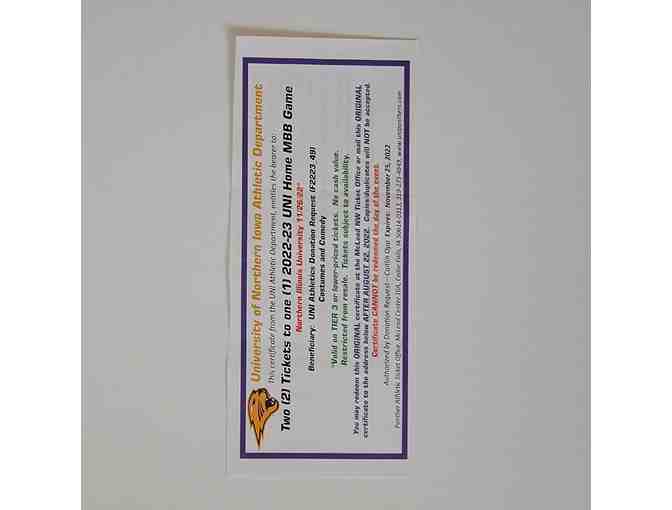 Two tickets to the University of Northern Iowa men's basketball game VS Northern Illinois on 11/26/22.