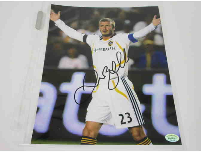 David Beckham Autographed Soccer Photo. Comes with certificate of authenticity.