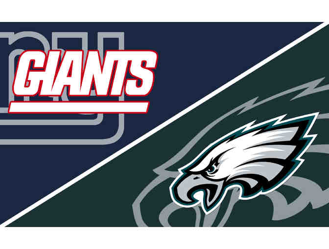 Includes: 2 tickets and a parking pass to the New York Giants vs Philadelphia Eagles game at MetLife Stadium on December 11 at 1:00 p.m. The seats are 5 rows from the field, in the corner of the endzone where the Giants enter the stadium.