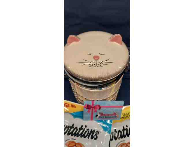 Delightful vacuum sealed kitty treat jar, 2 mega bags of Temptations treats and $30 Rumford Pets gift card