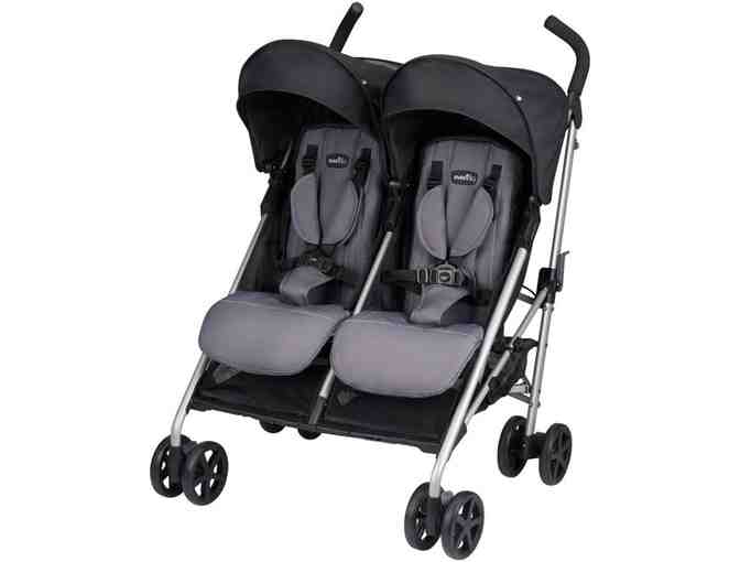Evenflo Minno Double Stroller, Two-Tone Gray Black: Stroller is designed for 2 children, up to 90 lbs total weight Independent multi-position reclining seats Oversized canopy with extended visor Generous storage basket with rear access Parent flex cup holder offers a snug fit for drinks Independently adjustable 2-position footrests Double umbrella stroller with comfort angled handlebars Suspension front wheel for a smooth ride Lockable front swivel wheel for superior maneuverability 1-hand, self-standing fold Light double stroller with convenient carry handle Lightweight, under 17 lbs Durable, easy-to-clean fabrics Model number: 17832030 Color: Glenbarr Grey