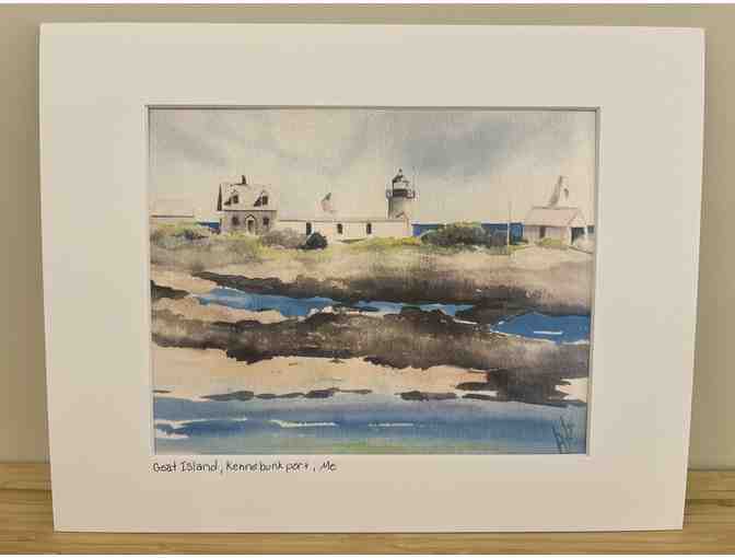 Watercolor print of Goat Island Lighthouse by Maine Home Portrait Artist