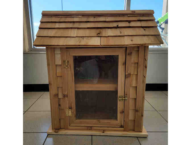 This Little Free Library was handmade by Fran Long who runs Grandpa's Workshop. Add a little library to your residence, your neighborhood or donated it to your community. Fran is even willing to be contacted for assistance with mounting it (you would arrange time and cost with him)