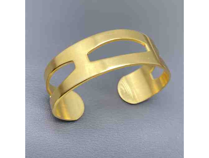 Architecturally inspired 3/4"" wide cuff. Gold over brass in a soft shiny finish.
