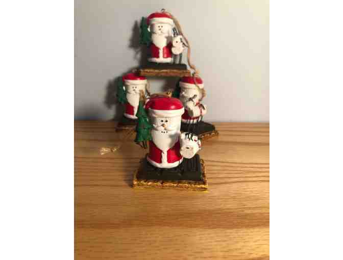 Set of 4 identical Santa S'more Ornaments.