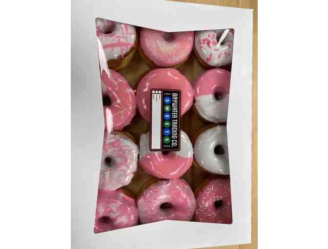 Baywater Trading Company has dontaed 1 dozen pink/white themed donuts. What a way to treat your family, guest or office with these delicious donuts in the morning.