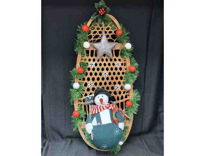 Antique snowshoe truned into this festival winter wreath. This includes a $50 gift certiciate to Absolute Glass in Methuen, MA