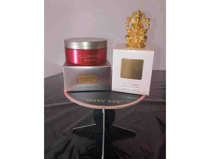 Indulge in a luxurious treat for your skin and your senses with the limited-edition† Mary Kay Illuminea™ Bundle. 1.6oz.Noted of Orange Blossom, Scarlet Peony, Water Lotus and Honeysuckle. Body Soufflé is dermatologist-tested and tested for skin irritancy and allergy.