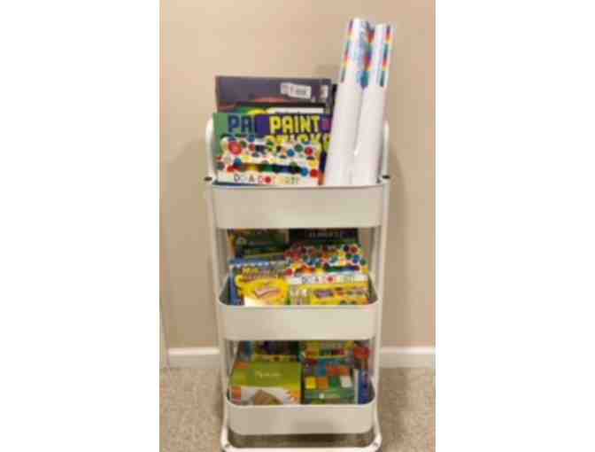 Let your crafting imagination soar with this craft cart abundantly filled with all the art mediums you could imagine! Entertain and inspire your little Picasso with everything he or she needs to express their inner artist! Craft the day away with activities such as a birdhouse kit, slime kit, dot painters, oil pastels, rock painting kit, modeling clay, kinetic sand, and SO much more!