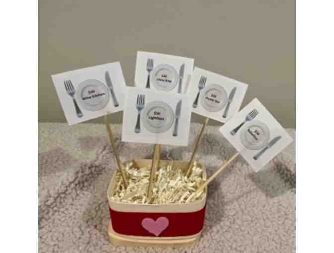 $50 Rebellion, $50 Lightfoot, $50 Wine Kitchen, $50 Oyster Bar, $40 China King