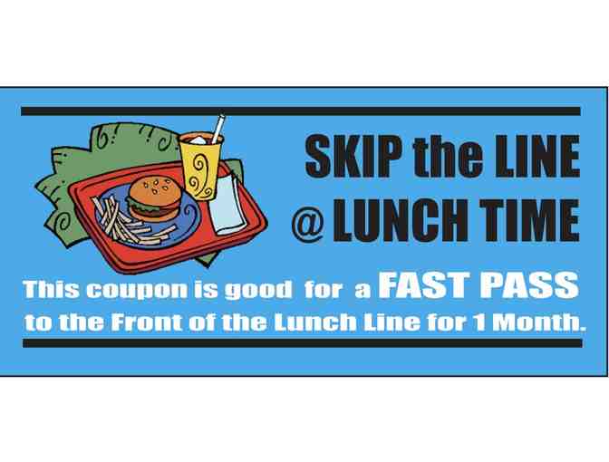 Winning bidder will receive a pass to use to 'cut the line' to to the front of the hot lunch line!