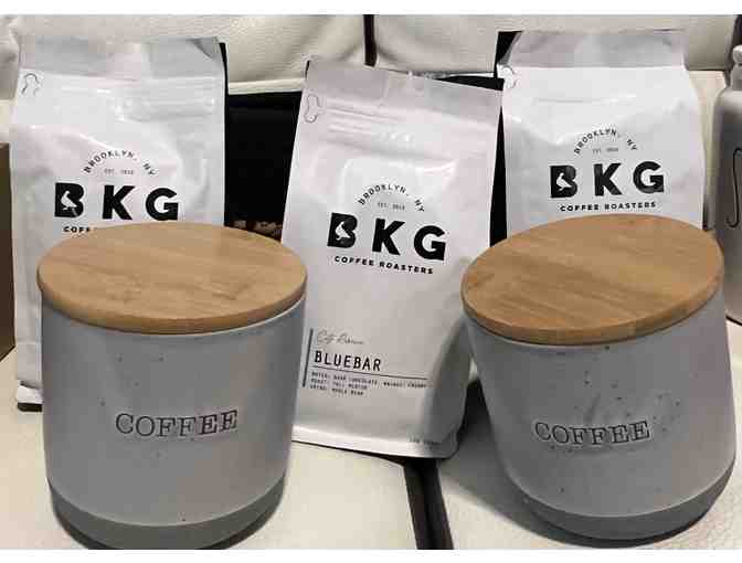 2 Coffee Cannisters and 3 BKG Roasters Coffee
