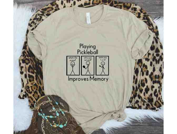 Playing pickleball works on your memory skills :-) Enjoy this whimsical t-shirt. Bella Canvas brand, Adult S. Made in USA.