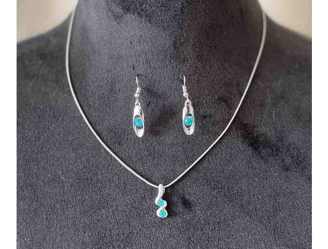 Fun fashion turquoise gemstone necklace and drop earrings.  18-inch 925 Silver plated 1.2mm snake chain link necklace with lobster clasp.