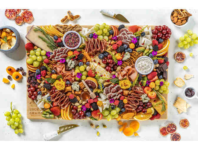 Lucky Graze is offering a complimentary large chacuterie board that serves from 10-12 people. See examples of Lucky Graze's delicious and beautiful cheese boards:
