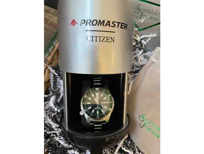 What time is it?  Time to check out this Citizen's Men Eco Drive Promaster Sea Aqualand Drive Watch from Southlake Jewelers - -and it's Dragon Green!