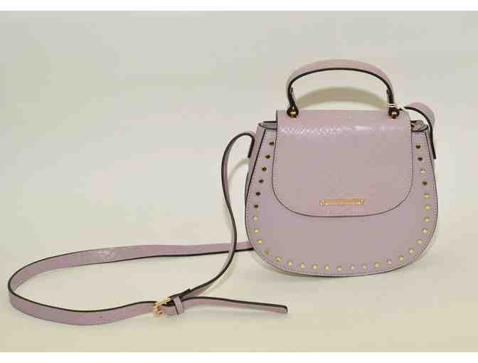 Abbie and Emmie Lavender Crossbody Bag with Gold Stud Detail and Crocodile Flap