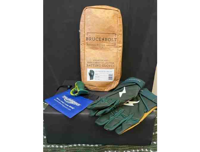 HIGHEST QUALITY, MOST DURABLE BATTING GLOVE IN BASEBALL: Each pair of BRUCE BOLT batting gloves are handmade by skilled craftsmen using only the highest quality 0.9mm Cabretta leather and stitching techniques which makes our gloves buttery soft but more durable than any other glove on the market.