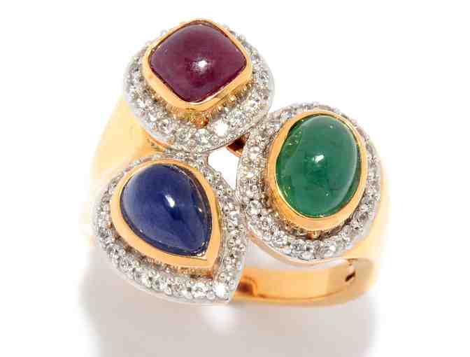 Sterling Silver Ruby, Blue Sapphire, Emerald & White Topaz Ring
