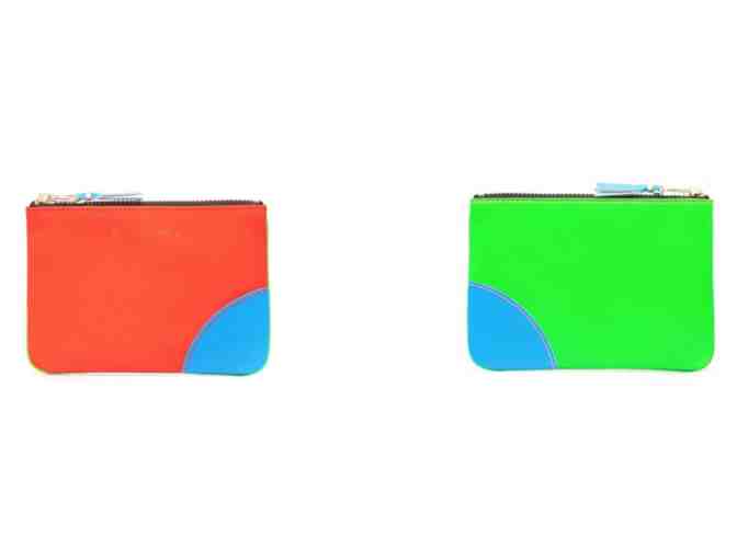 Stand out from the crowd with this 2 sided neon wallet by luxury streetwear brand Commes des Garcons. Soft Goatskin leather, brand logo and top zip closure make this wallet really pop!