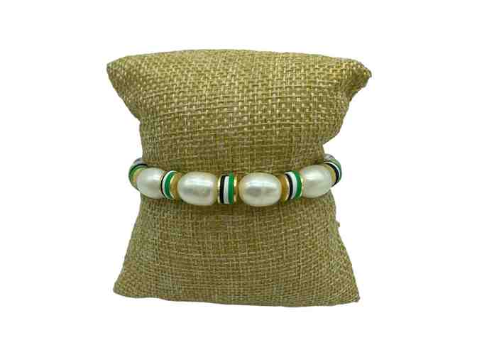 GORGEOUS! Up your Dragonwear game with this handmade bracelet by Grit and Grace Custom Creations. Freshwater pearls adorned by Dragon colors and gold accents.