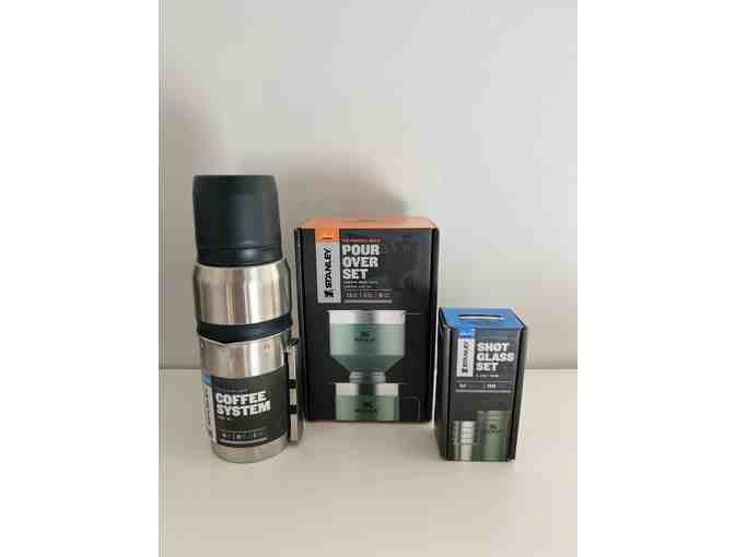 - All-in-one and all you need. This kit includes a sturdy boiling pot, a French press, a vacuum bottle and two drinking cups so you can make fresh-brewed coffee for two, no matter where you’re camped out. There’s even a hidden compartment in the stopper to store your dry coffee grounds.