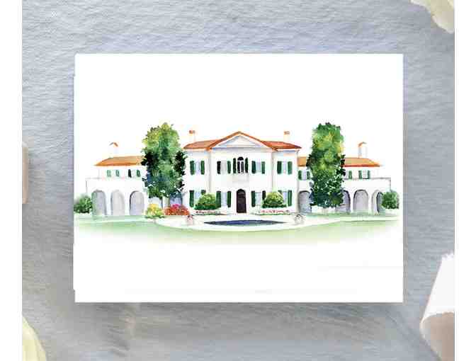 Beautiful watercolor of Crane Cottage, Jekyll Island Club, on folded note cards with envelopes.