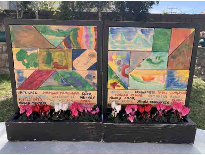 Handmade wooden planters from Ms. Kaufman's students. Flowers included and can be put together.