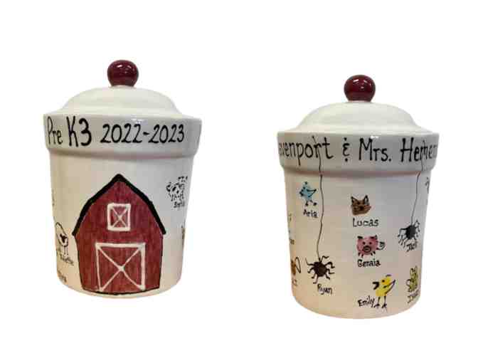 Precious fingerprints became adorable animals to adorn this one-of-a-kind "Farm Cookie Jar".