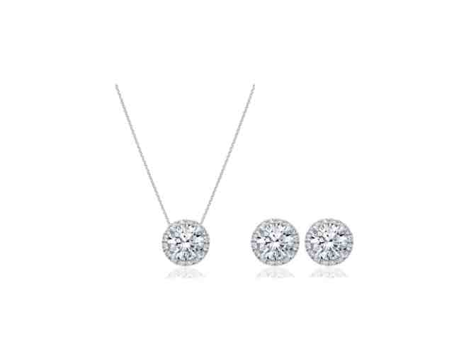 Timeless, simple elegance defines this lovely necklace and earrings set. Both pieces are hypoallergenic and finely crafted in solid 925 sterling silver with gold overlay and world’s renowned European zirconia - the best simulated diamonds ever created! The necklace features an 18-inch adjustable chain, and the post earrings have secure backings. A timeless set for someone special. Outstanding packaging for gifting or keepsakes! Created exclusively for the nonprofit community.